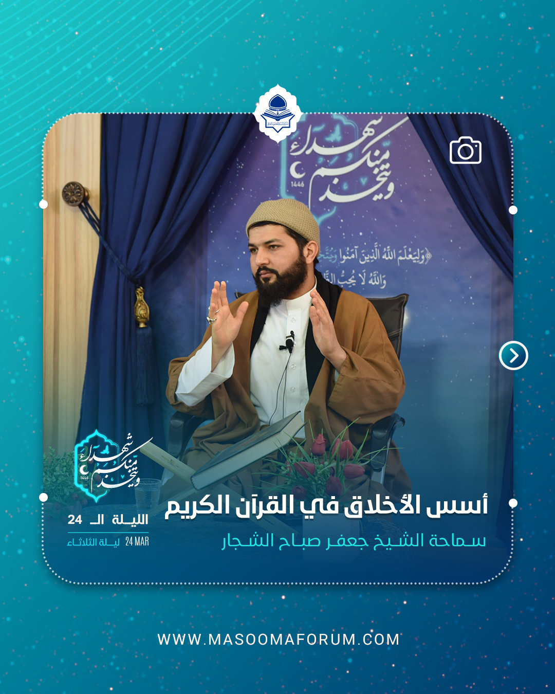 2025 - الملتقی الأسبوعي - رمضان 1446 أسس الأخلاق في القرآن الكريم 20 مايو, 2025 20212 أسس الأخلاق في القرآن الكريم بمشاركة:سماحة الشيخ جعفر صباح الشجار. التغطية المصورة: قیم هذا المقال! كلمات دلالية: شارك المنشور Telegram Facebook Twitter Whatsapp +Google Linkedin رابط قصير مكتوب https://masoomaforum.com/?p=4004 انسخ الرابط