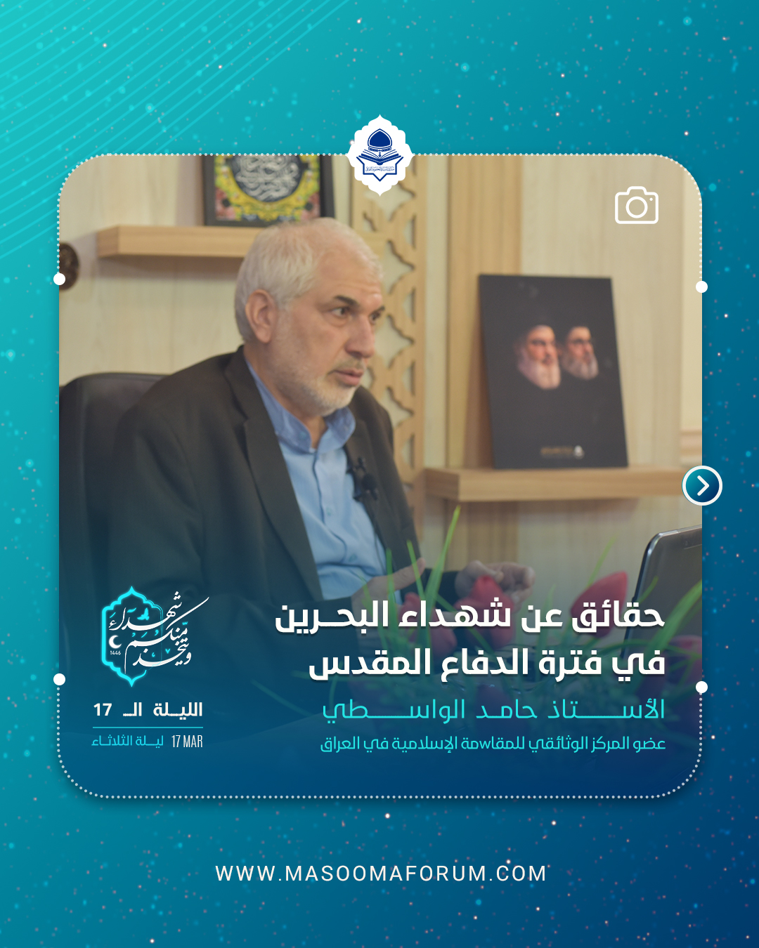2025 - الملتقی الأسبوعي - رمضان 1446 حقائق عن شهداء البحرين في فترة الدفاع المقدس 20 مايو, 2025 40169 حقائق عن شهداء البحرين في فترة الدفاع المقدس بمشاركة:سماحة الأستاذ حامد الواسطي. التغطية المصورة: قیم هذا المقال! كلمات دلالية: شارك المنشور Telegram Facebook Twitter Whatsapp +Google Linkedin رابط قصير مكتوب https://masoomaforum.com/?p=4003 انسخ الرابط